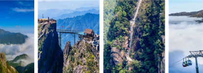 酒店享用早餐——后前往【连山金子山风景区】(不含缆车,金子山单程缆车70,双程110/人)所处的连山壮族瑶族自治县,是清远市及全省唯一的壮族居住区,又是过山瑶人主要集居地之一。金子山海拔1417米,为广东第八高峰。可以途经广东第一天梯,登上山顶,尽览两广交界之美景。要登上金子山顶并不那么容易,中间还要经过500多米的天梯,“天梯”是登山必经栈道,坡度约有80度,几乎是垂直挂在悬崖绝壁上,看着都让人心惊。游客必须手扶栏杆,几一步一叩首往上攀登,南粤小华山与广东第一险峰由此而得名。景区主峰海拔1417米,为广东第八高峰。上到金子山半山坡,便可以看到半山以上都是漫山遍野的杜鹃花。据介绍,这里的杜鹃花总面积超过千亩,近十个品种全部为野生高山品种,长在海拔700多米以上的高山上,并且树龄长、树冠大,其中最大的树冠直径在3米以上,树龄在百年以上。【金子山玻璃桥】与观景台建在海拔1417米的高峰上,玻璃观景台距地面最高处300多米。玻璃廊桥沿最高峰的悬崖峭壁搭建,玻璃天桥连通金子山最高两大主峰通天南峰、通天北峰。玻璃观景台建在通天南峰,悬空伸出去,四周用不锈钢栏杆围住,玻璃下面同样是深不见底的悬崖,人站在上面,立即就有了悬空的感觉。温馨提示:到达云海玻璃桥有二个路向,可以走天梯沿山攀途而上,也可以走沿山栈道稍为平缓的而上)——午餐自理——约定时间结束愉快行程,乘车回肇庆。