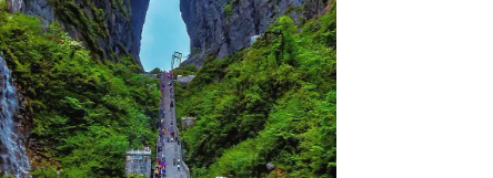 后游览【天门山国家森林公园】(游览时间约4小时,含上下山交通、扶梯及鞋套)登张家界之巅,俯瞰张家界全景,观赏奇妙美丽的盆景花园。天门山文化底蕴深厚,有“武陵之魂”之称,更有湘西第一神山的美誉,它兼峰、石、泉、溪、云、林于一体,集雄、奇、秀、险、幽于一身,被誉为空中原始花园。惊险刺激的【盘龙崖玻璃栈道】是张家界天门山景区继悬于峭壁之上的鬼谷栈道、凭空伸出的玻璃眺望台、横跨峡谷的木质吊桥后打造的又一试胆力作。可与举世闻名的美国大峡谷玻璃走廊“天空之路”媲美,因而有了东方“天空之路”的美誉。