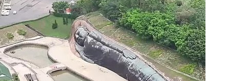 2、【三水卧佛】:大佛依山临水,头北身南,右臂作枕,左臂平放于体上,大佛姿态舒展而从容,表情柔和安详,这是中国最大的石雕卧佛,卧佛全长108米,高16米,也是祈福的绝佳圣地。