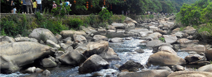 ◆游享受有“广东九寨沟”之美誉 四会奇石河景区 独特的自然景观和优雅的生态环境 养生木栈道 天然大氧吧区 风情水车群;